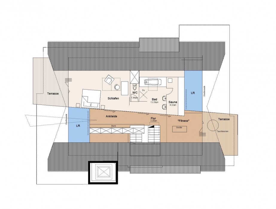 Neubau Dachgeschoß, Sanierung EG, 1. und 2.OG., Sanierung der Natursteinfassade